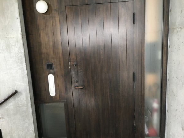 木製玄関ドア 施工後 既存色着色・ポリウレタンクリヤー塗装
